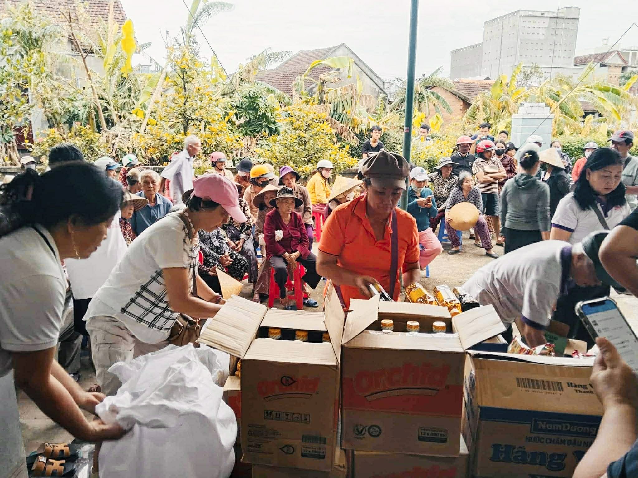 Món quà gồm có 10 ký gạo và nhu yếu phẩm đường sữa và 50k tiền mặt cho bà con đang gặp khó khăn vì bão lũ hoành hành